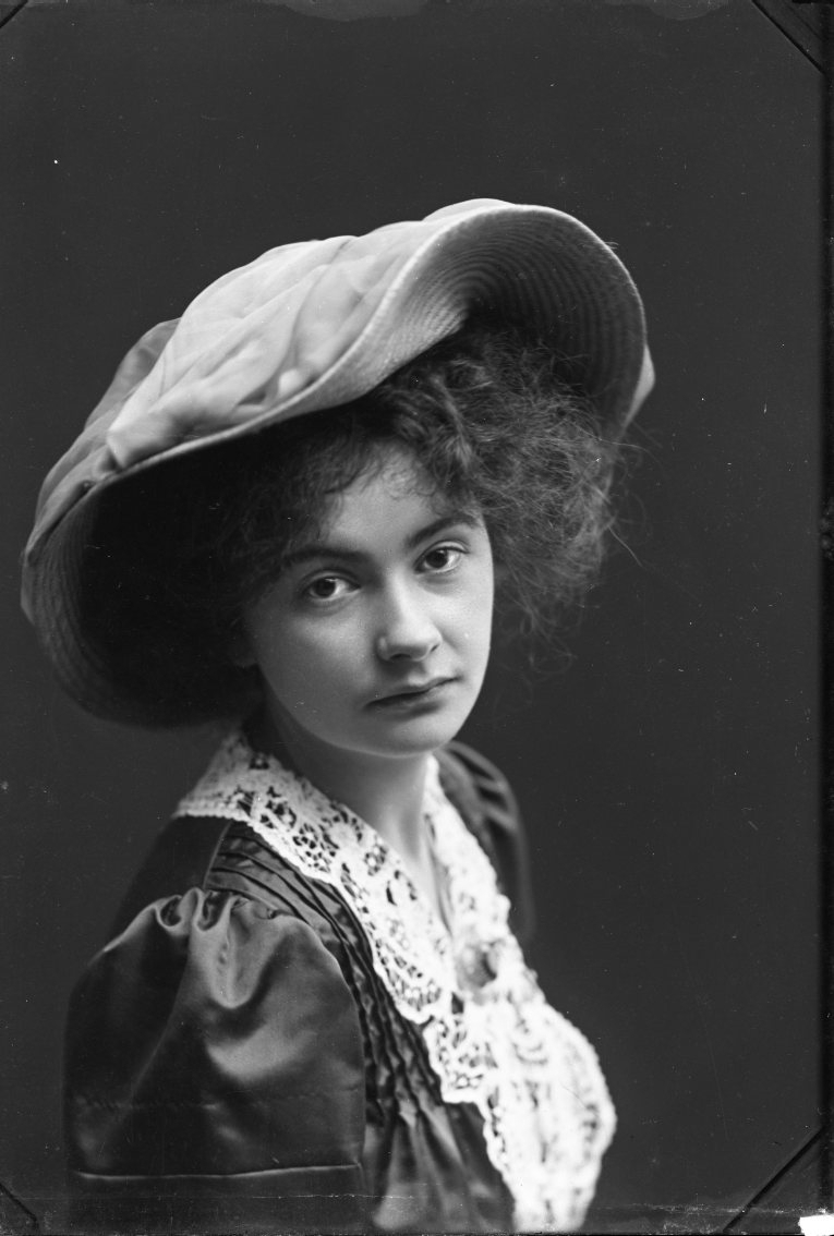Porträtt av en ung kvinna med hatt - bröstbild.