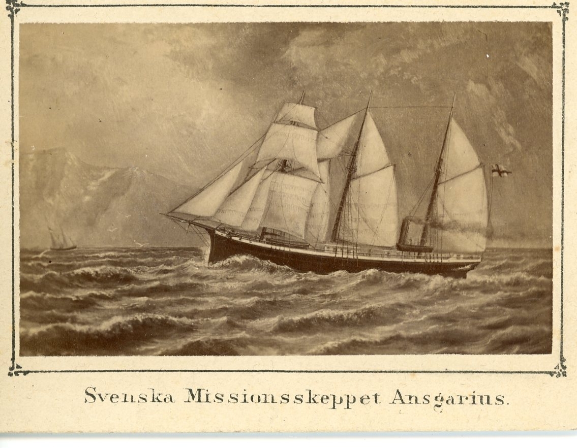 Fotografi av tryck/målning föreställande svenska missionsskeppet Ansgarius.