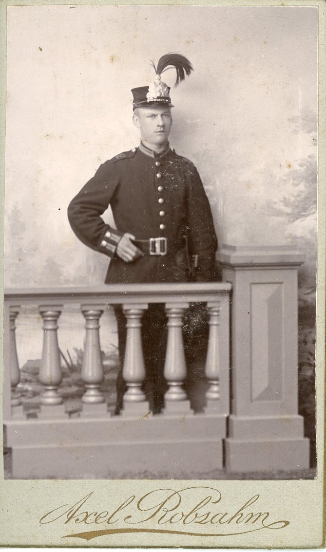 Kabinettsfotografi av en okänd ung man i militär uniform.