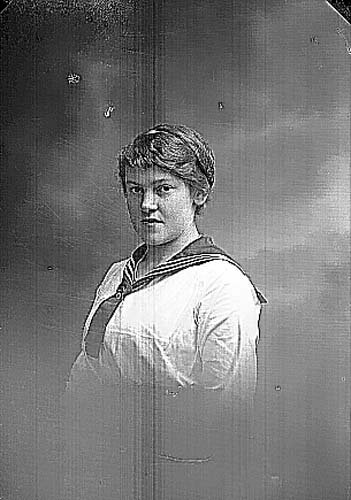 Bröstbild av en kvinna i ljus blus och sjömanskrage.
