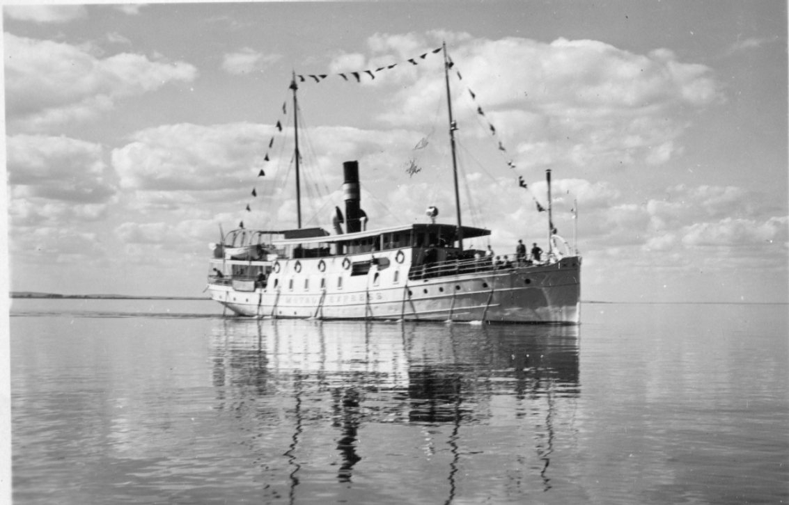 Ångfartyget Motala Express med flaggspel på Vättern.