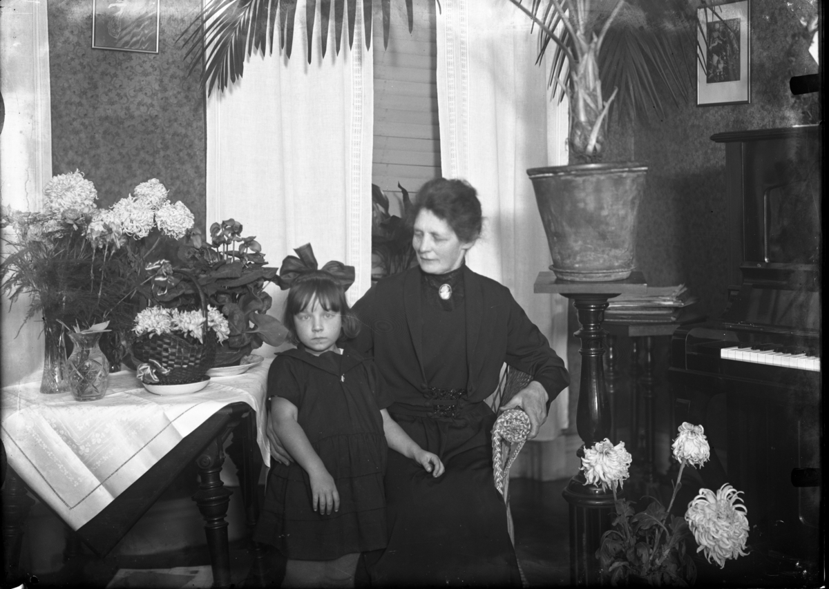 Troligen Anna Rythén, sitt hem, med okänd flicka.