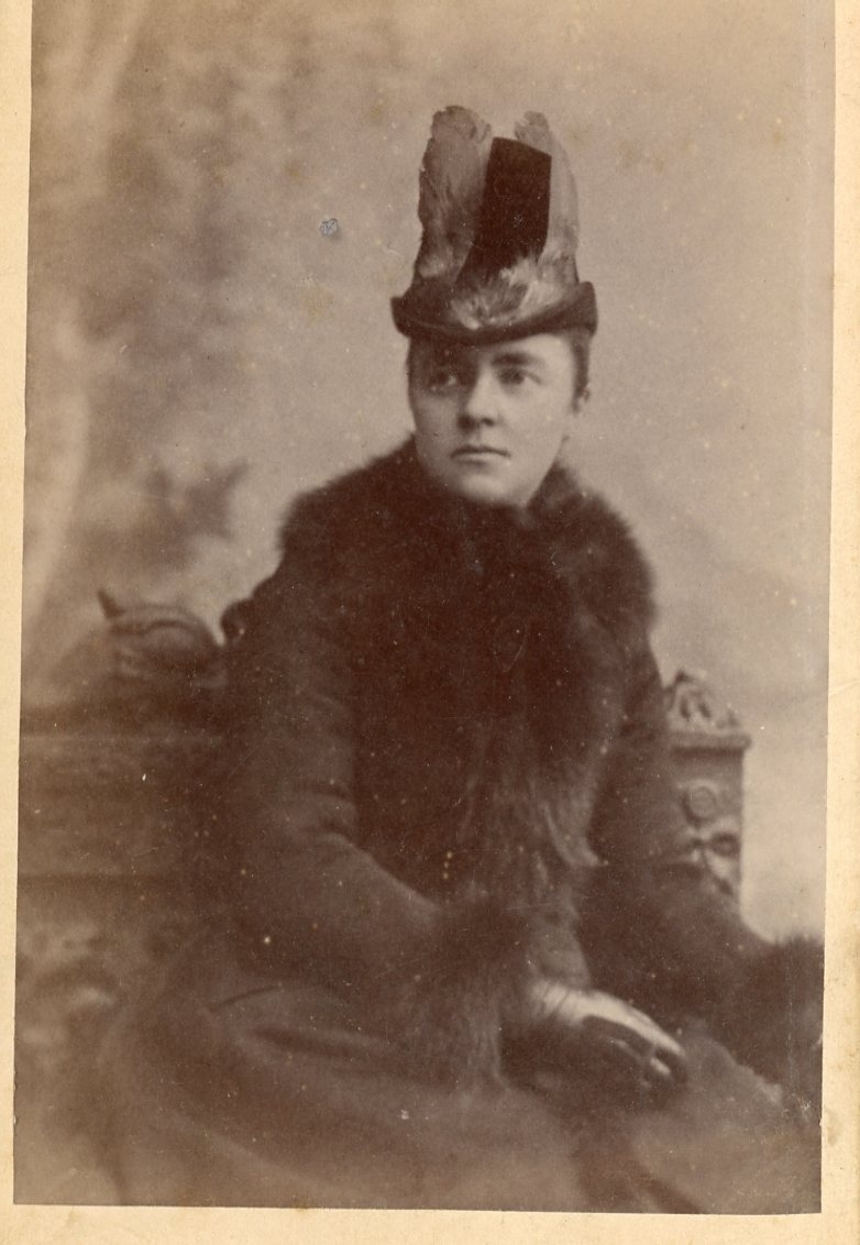 Kabinettsfotografi av en okänd kvinna med hatt.