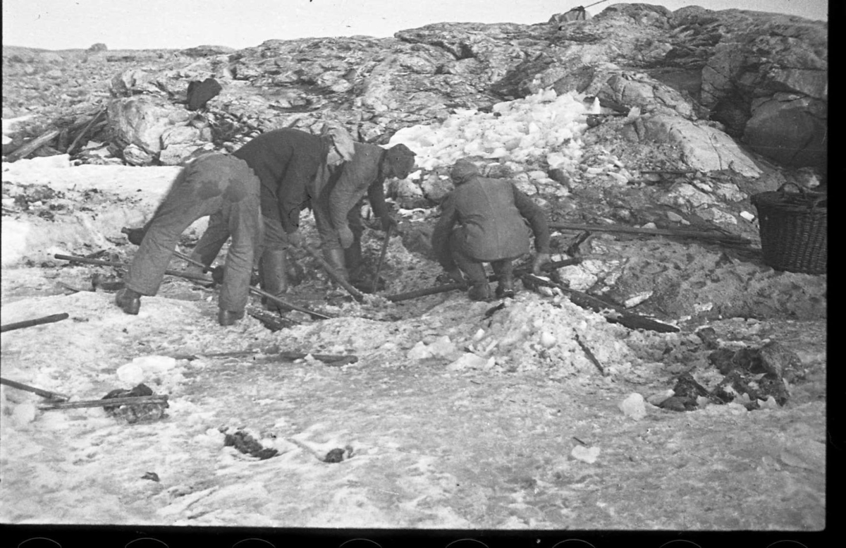 Utgrävning vid tältplatsen för Andréelägret på Vitön. Okända besättningsmän från Isbjörn.
