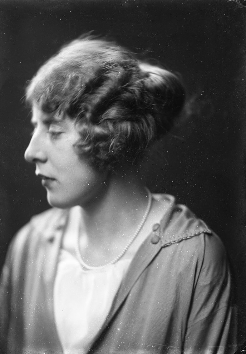 Bröstbild, profil, av en kvinna, med lite oskärpa.