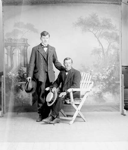 David Strandberg från Björstorp, Adelöv, med okänd man. Ateljébild.