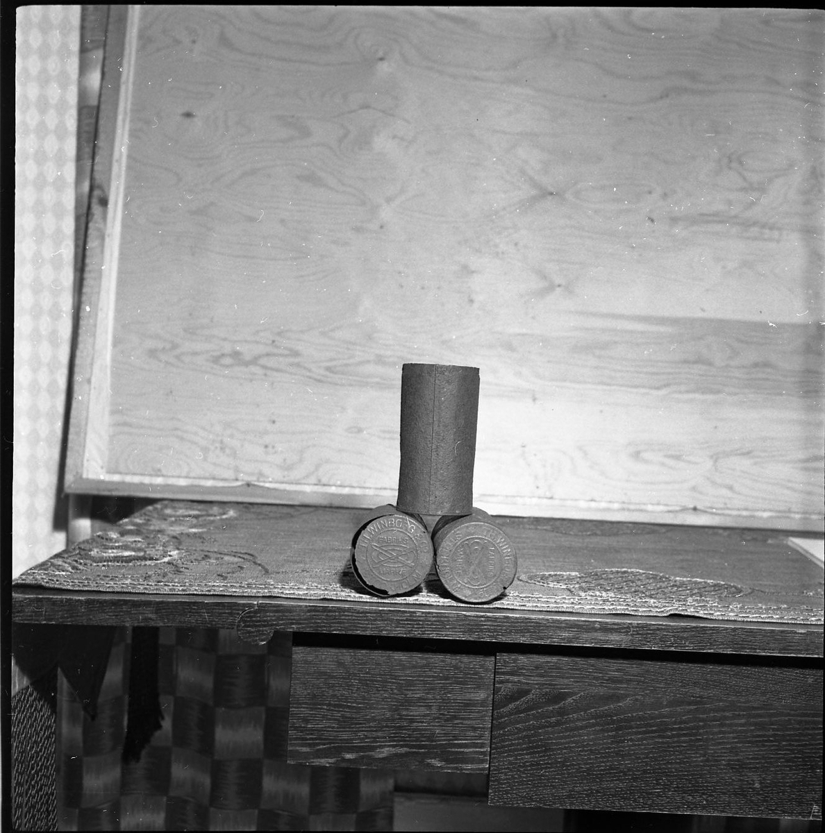 Tre stycken rostiga konservburkarn på ett burk. En står på de andra som ligger ner med värmemärket utåt: "Winborgs Stockholm".