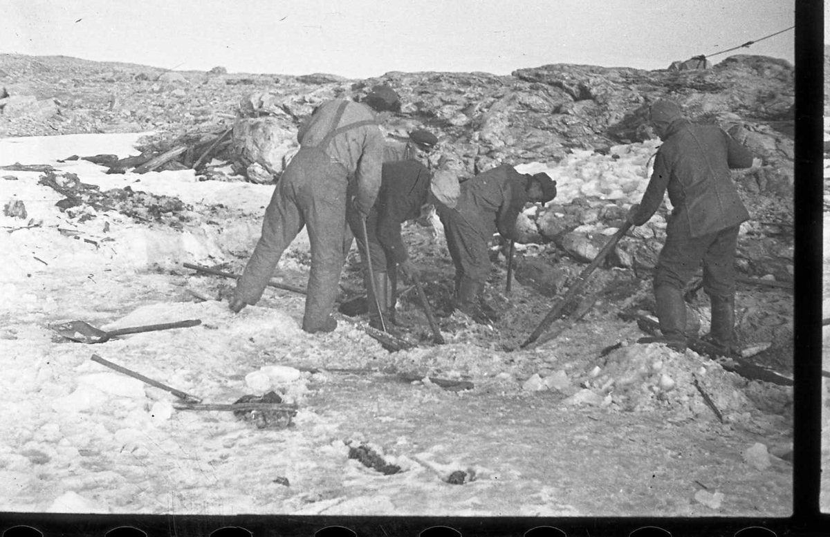 Utgrävning vid tältplatsen för Andréelägret på Vitön. Okända besättningsmän från Isbjörn.