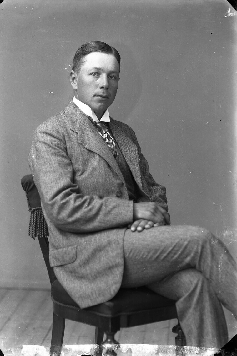 Porträtt av en man som sitter på en stol.