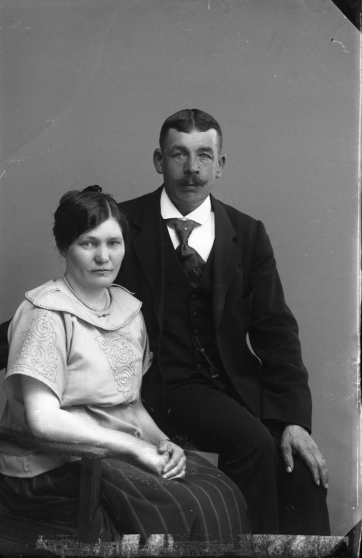 En man och en kvinna sitter intill varandra, troligen ett par. Någon av dem är C A Boström från Boden.