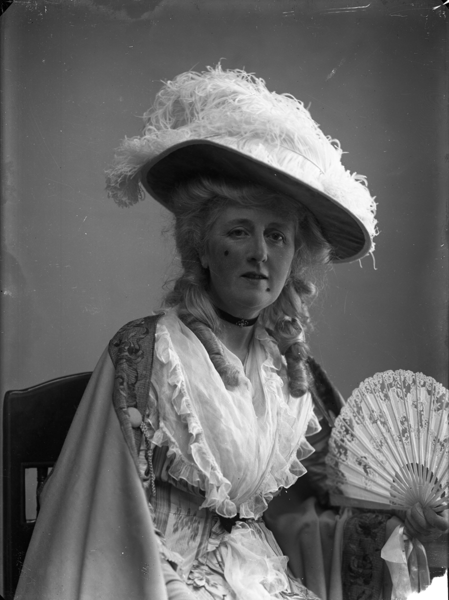 Friherrinnan von Düben, uppklädd för 1700-tals tablå.
