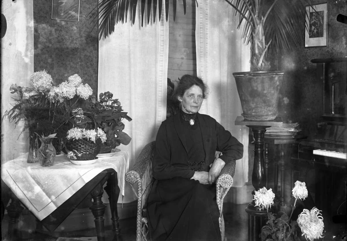 Porträtt av Berta Rythén i en hemmiljö.