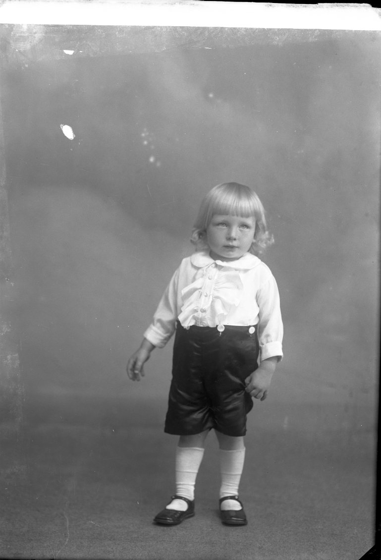 Porträtt av en liten pojke med kortbyxor och kråsskjorta.