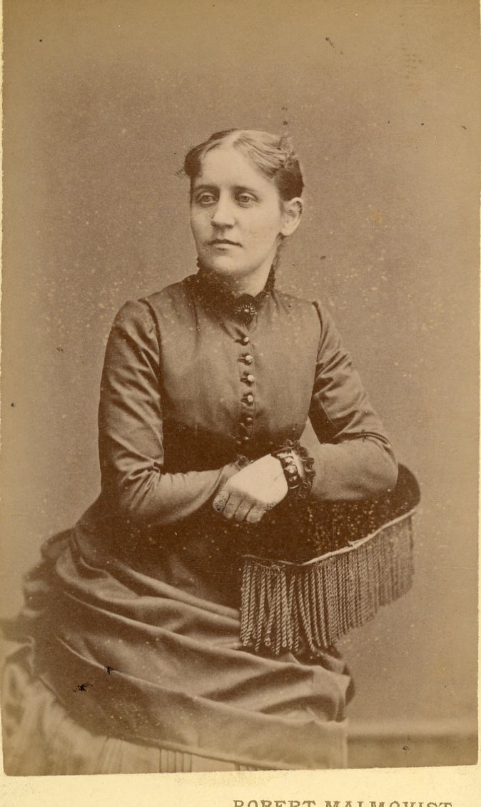 Kabinettsfotografi av en kvinna som sitter med armarna vilande mot en stolsrygg.