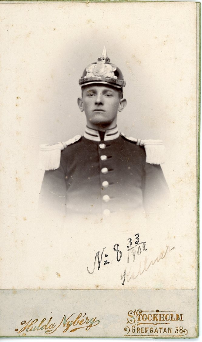 Kabinettsfotografi av en ung man i militär uniform.