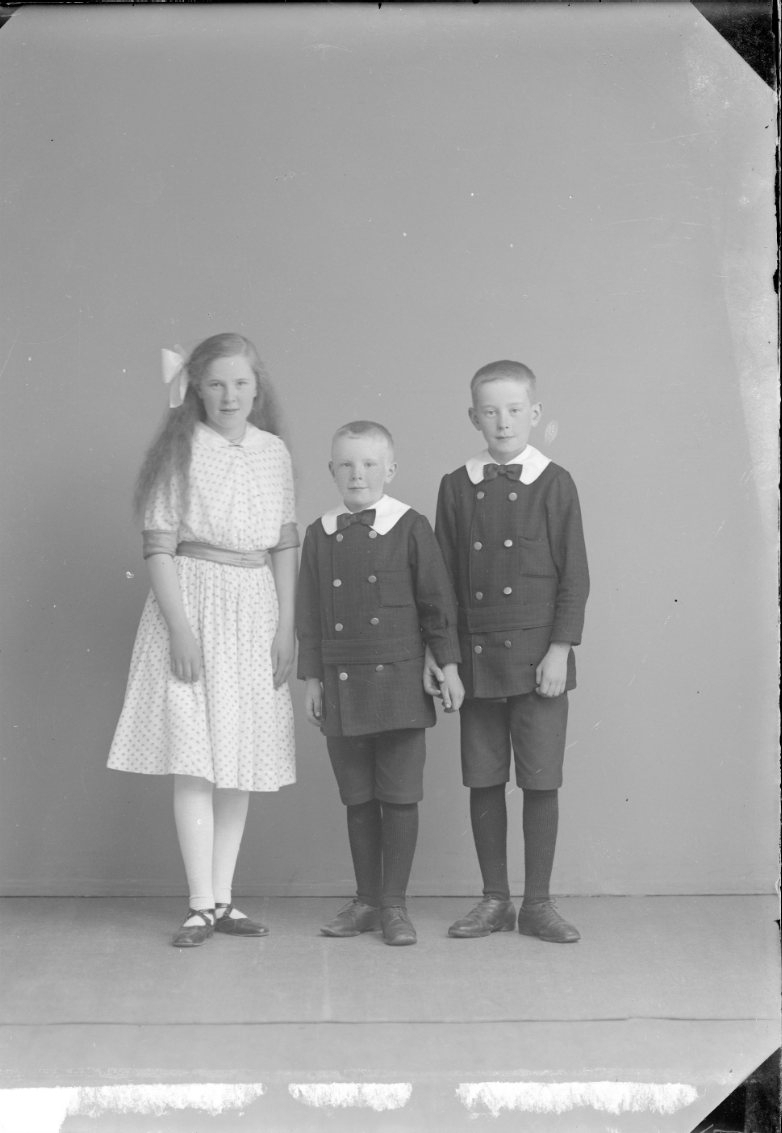 Gruppbild med en flicka och två yngre pojkar. Troligen syskon