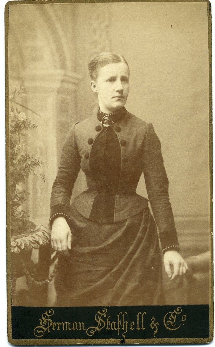 Kabinettsfotografi: porträtt av Anna Ryman, med brosch vid halsen.