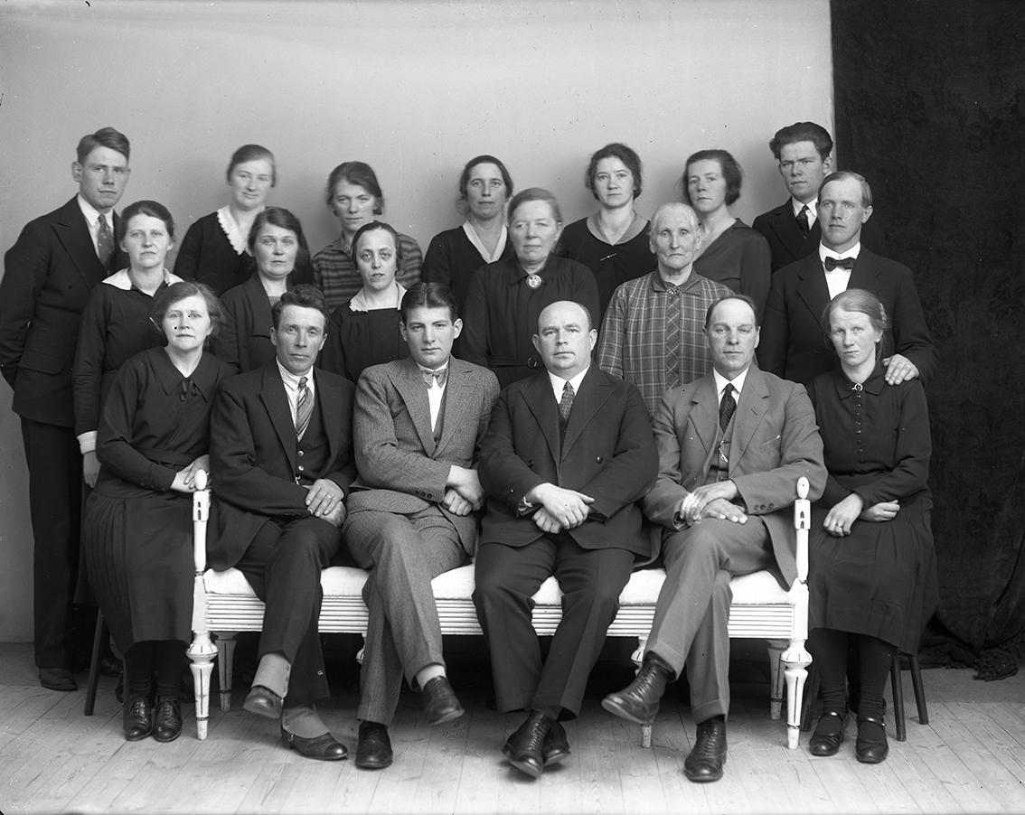 Gruppbild med kvinnor och män. Det är filadelfiaförsamlingen, troligen i Gränna.