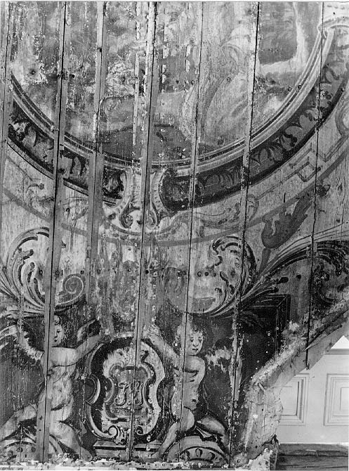 Del av målat paneltak med biblisk scen, troligen "Kristus i Getsemane"