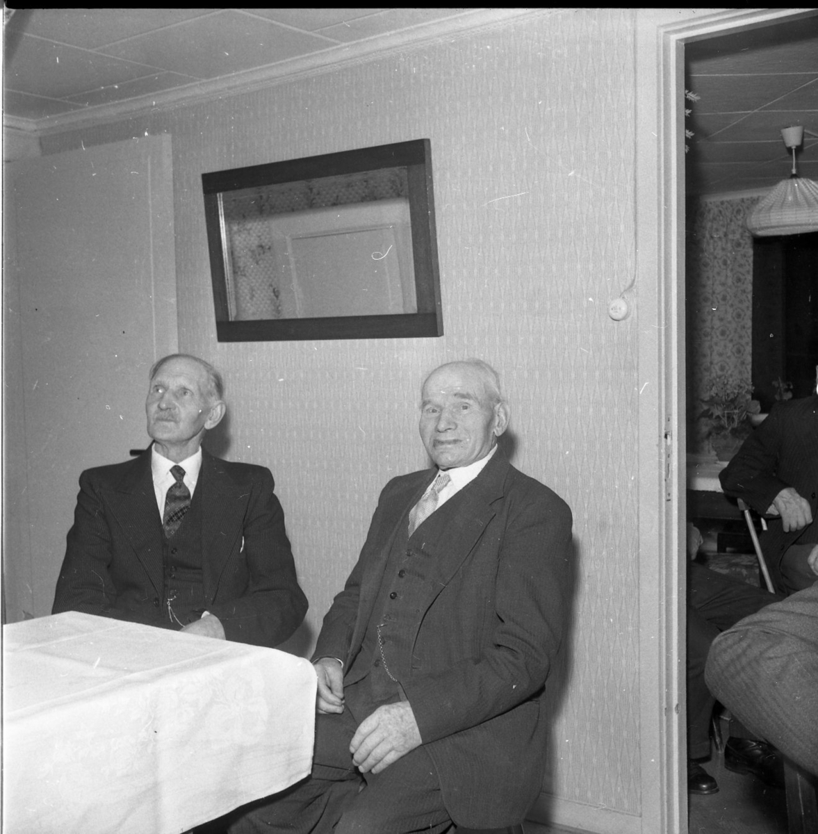 Två herrar klädda i slips och kavaj, under kavajen bär de väst. Kedjorna från fickur hänger ut ur de båda herrarnas fickor.