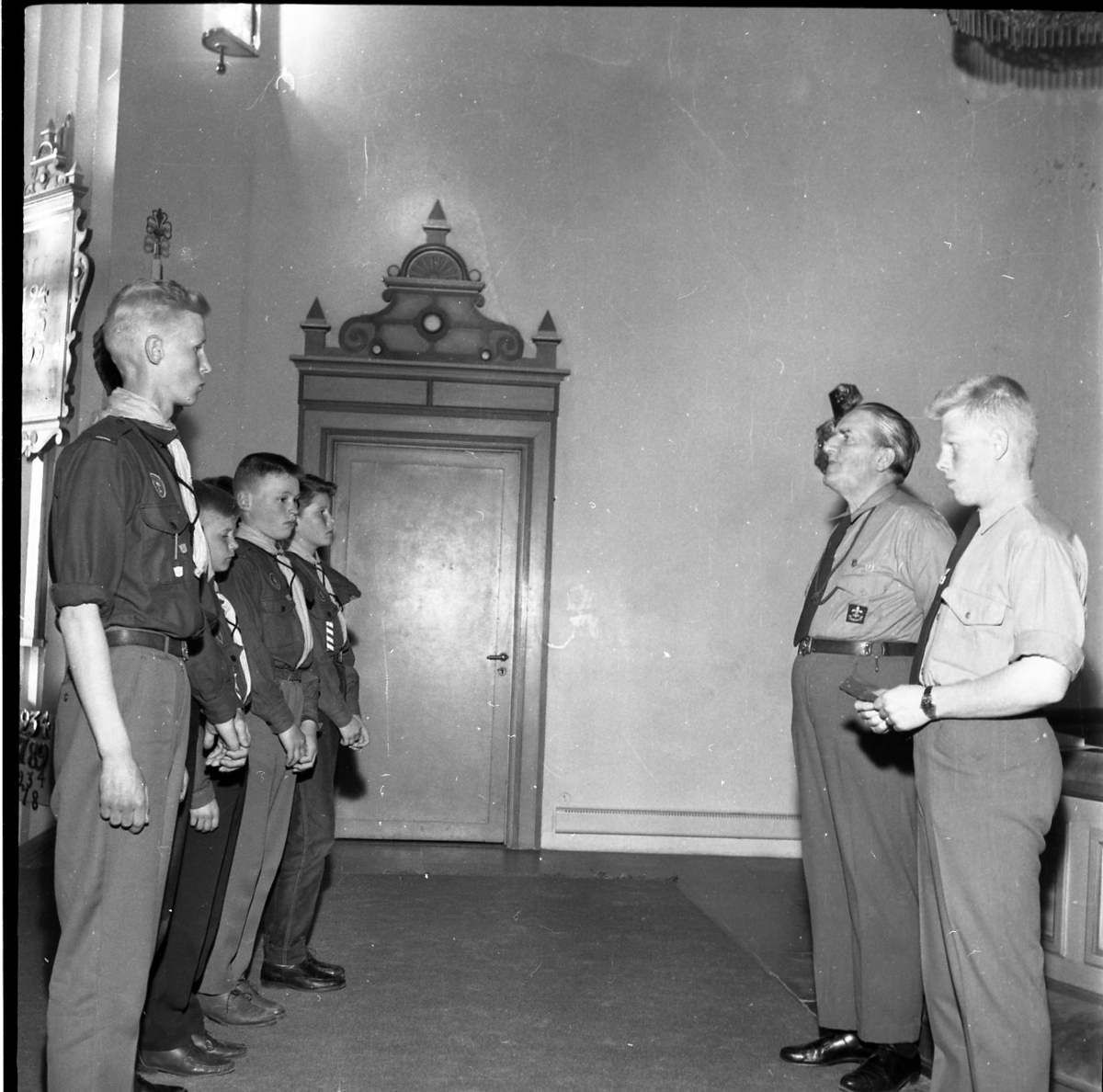 Barn och ungdomar står uppradade mittemot en äldre herre och en äldre kille.