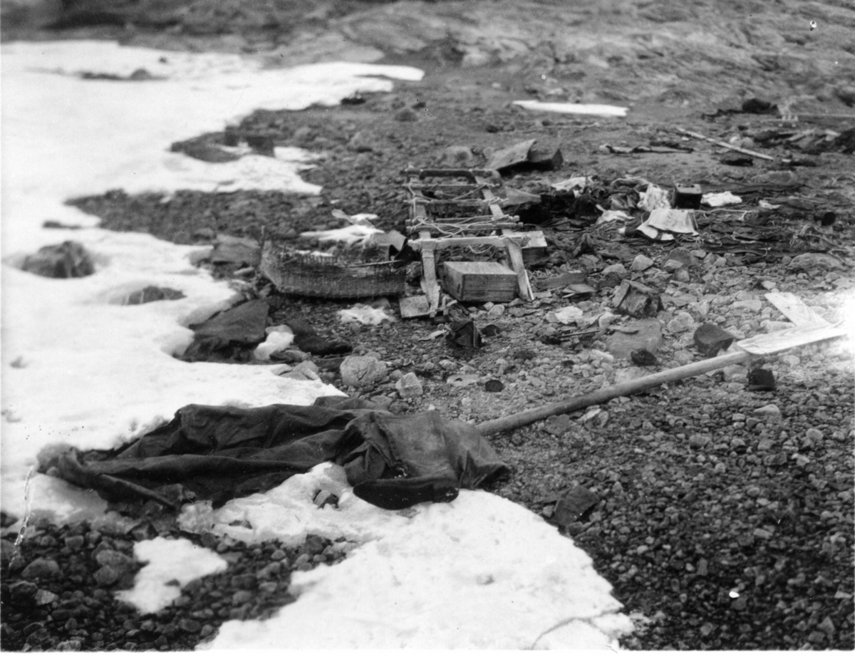 Släde (Strindbergs) med mera vid fyndplatsen på Vitön.