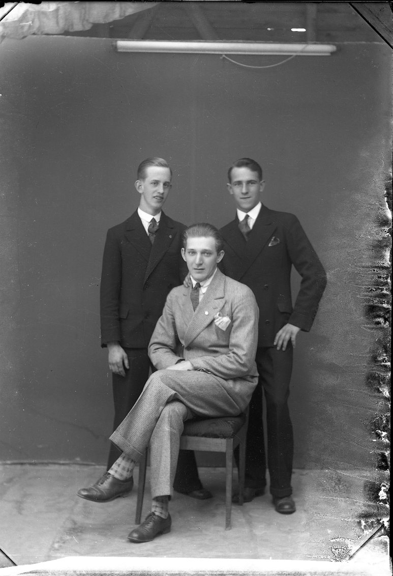 Gruppbild med tre unga män/ungdomar. En av dem är "herr Viger" i Gränna.