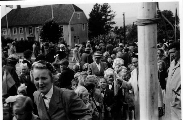 Folksamling med vuxna och barn i Braheparken i Gränna i samband med Eriksgata.