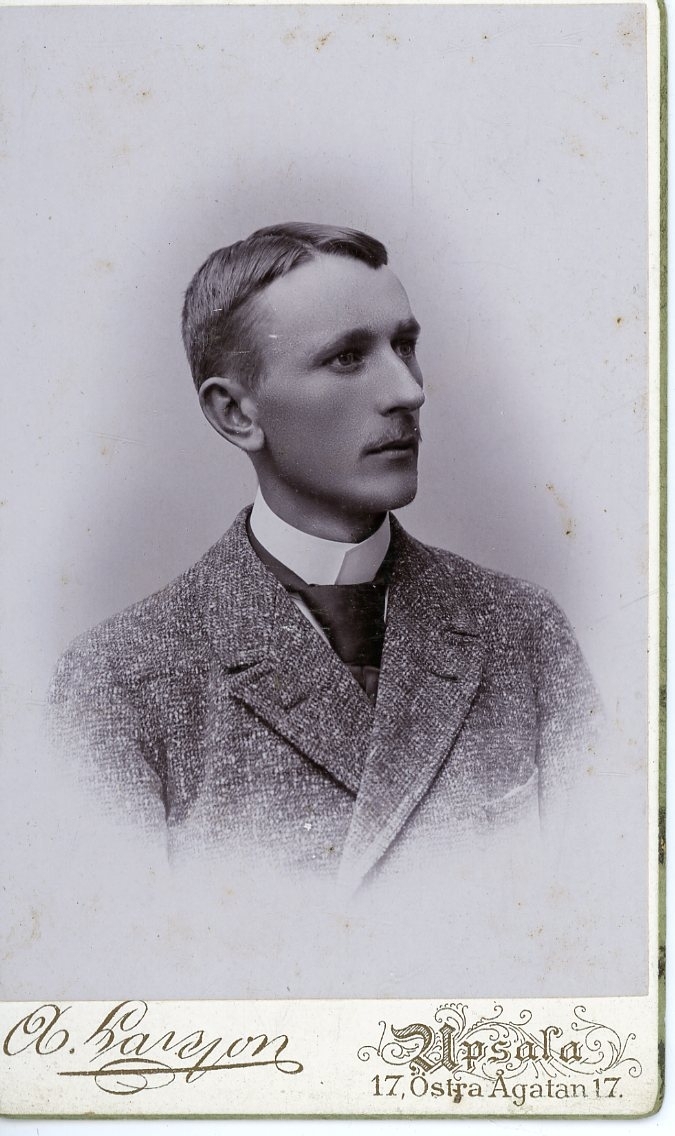 Kabinettsfotografi: en okänd ung man med tunn mustasch.