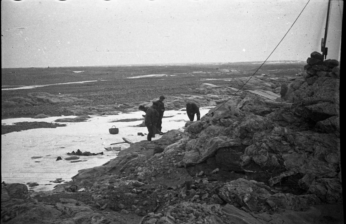 Besättningsmän från Isbjörn vid utgrävning av Andréelägret på Vitön.