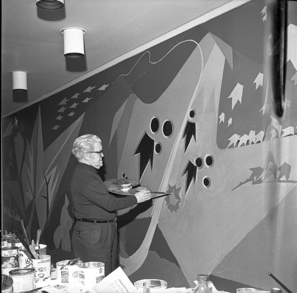 Georg Trapp målar på en väggmålning.