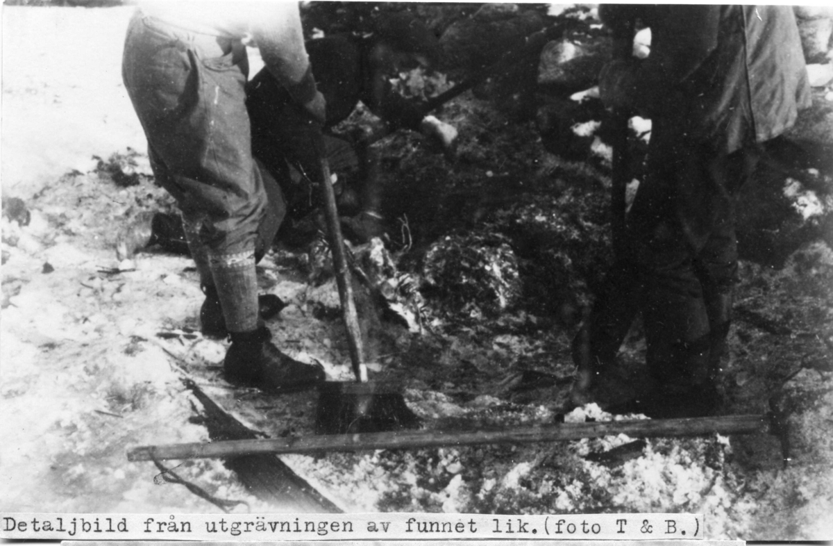 Utgrävning av Andréelägret på Vitön med manskap från Isbjörn. "Detaljbild från utgrävningen av funnet lik."