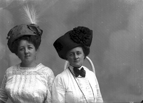 Bröstbild av två kvinnor med stora hattar.