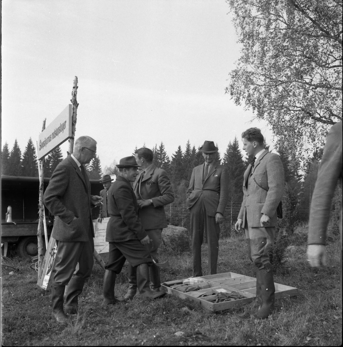 Några män är samlade runt några lårar. De bär rockar och gummistävlar.