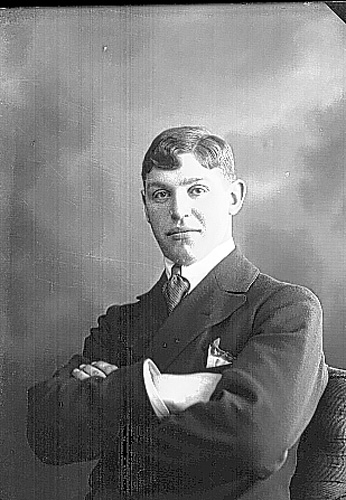 Bröstbild av en sittande ung man med armarna i kors.