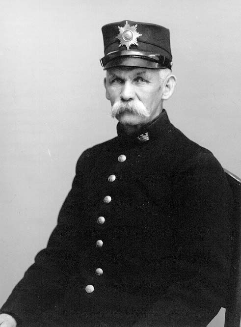 Porträtt av stadsvaktmästare A R Söderberg i uniform.