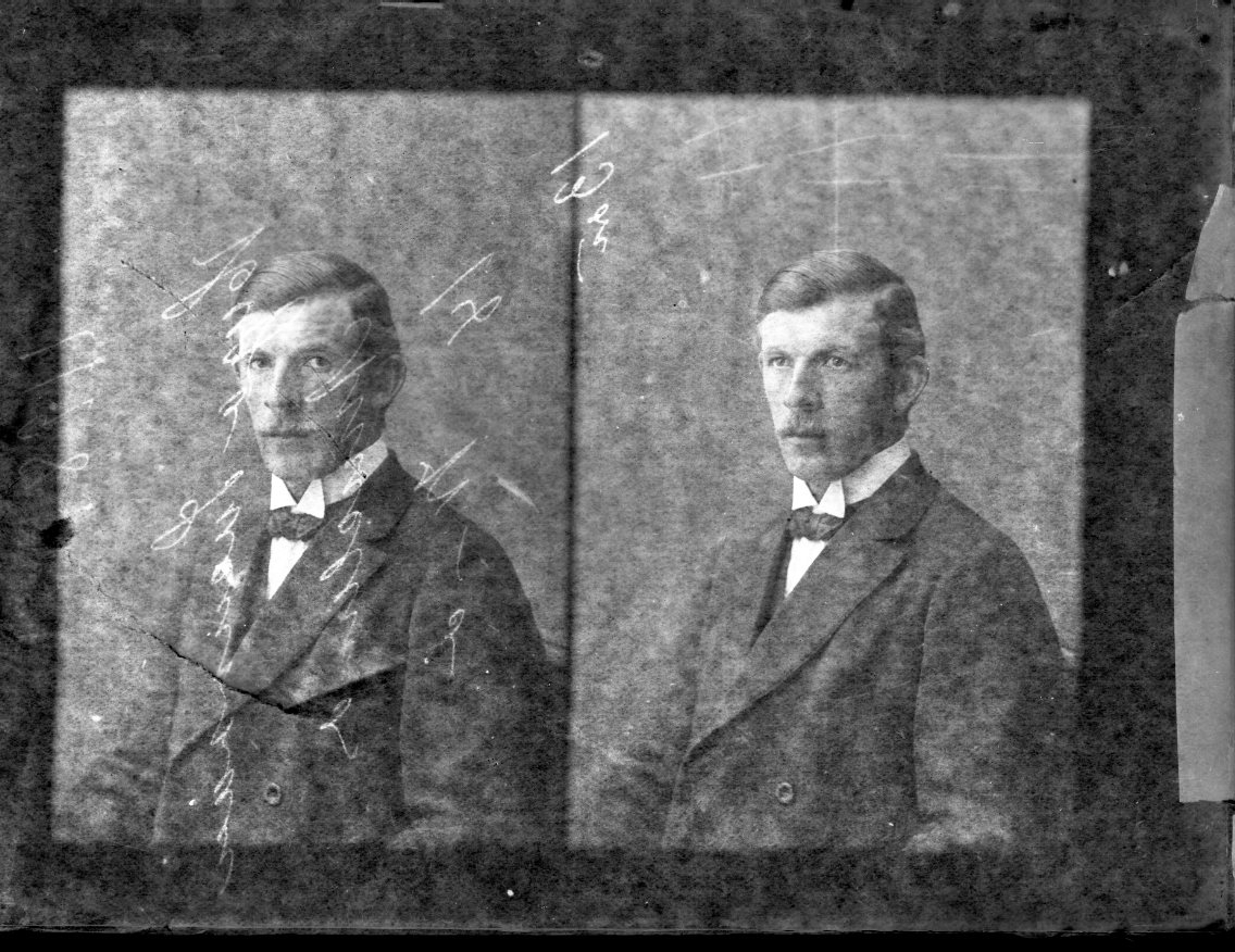 Porträtt av en ung man. Två bilder på samma glasplåt.