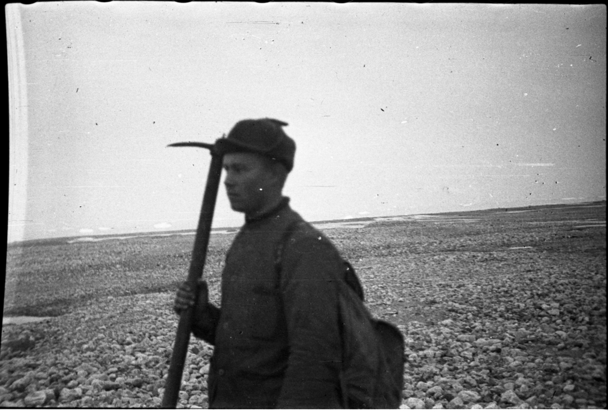 Besättningsman från Isbjörn på Vitön. Sannolikt första landstigningstillfället.