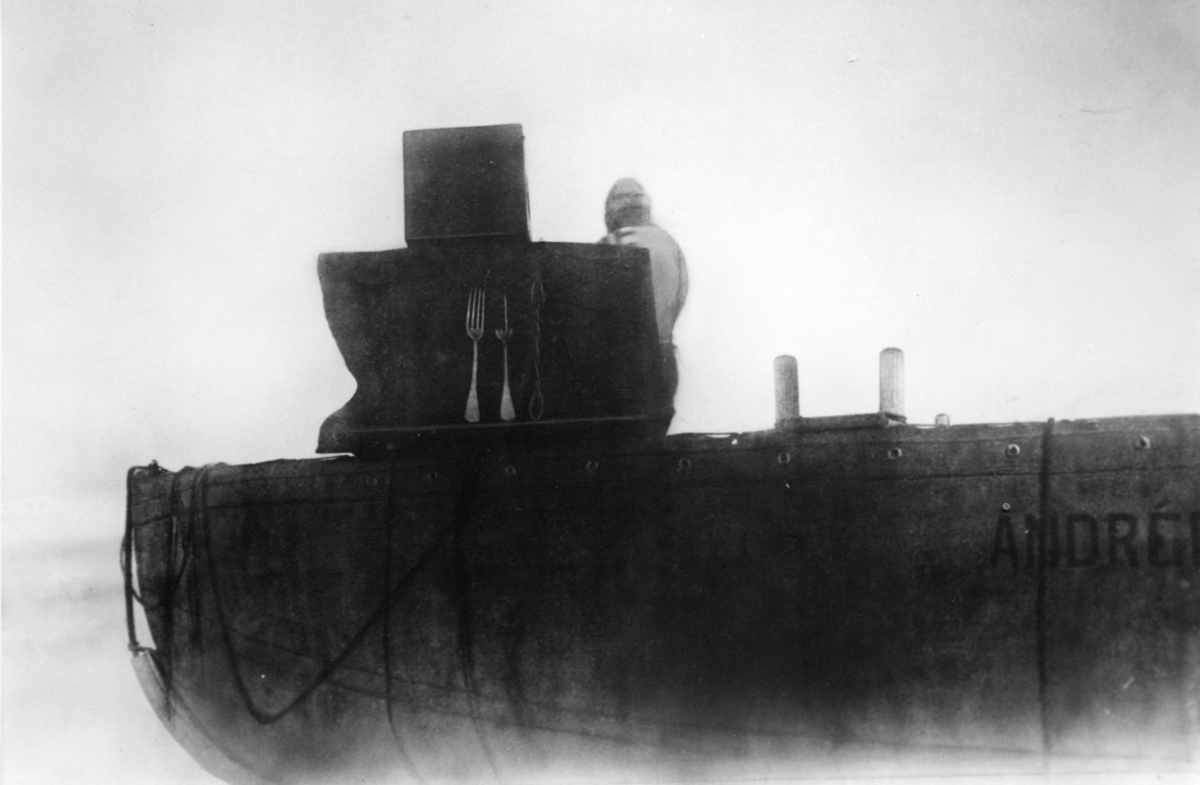 Isvandringen. Man fotograferar sina "gafflars utvecklingshistoria." Retuscherad version av gm.IV-87.