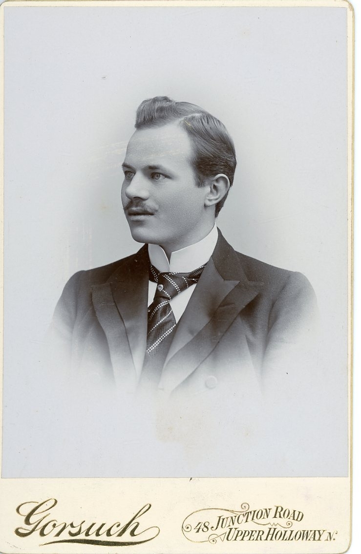 Kabinettsfotografi: en okänd ung man med mustasch.