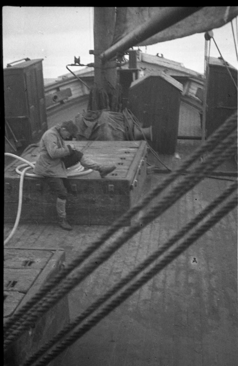 Troligen P W Zapffe ombord på Isbjörn, sannolikt på väg till Vitön