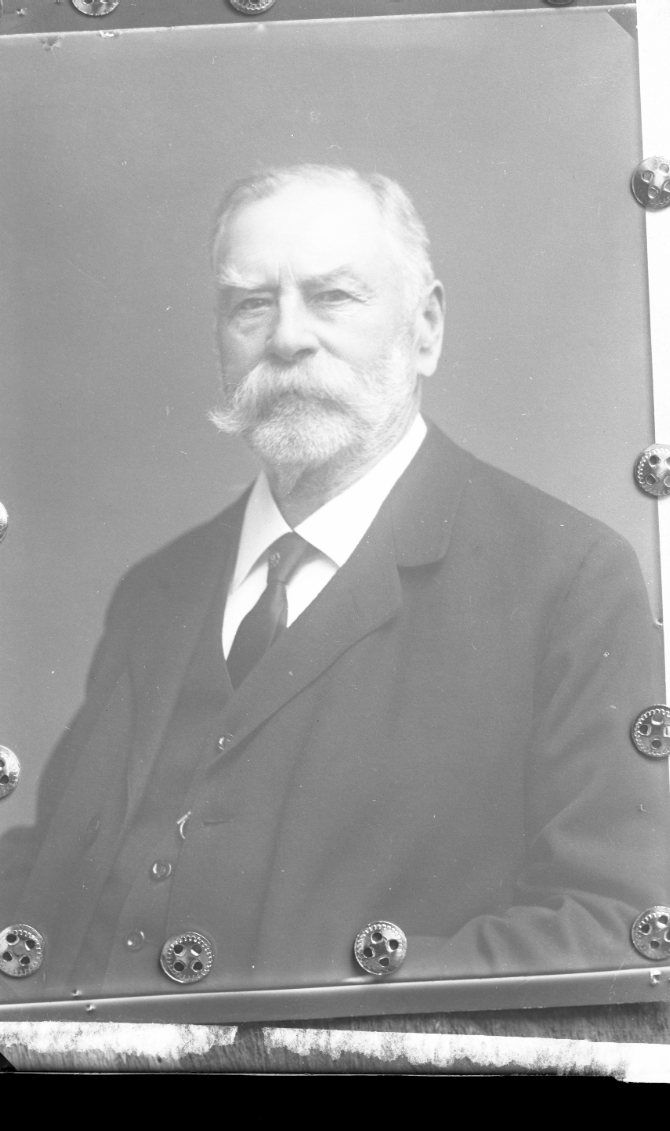 Porträtt av en äldre man med vit mustasch och skägg.