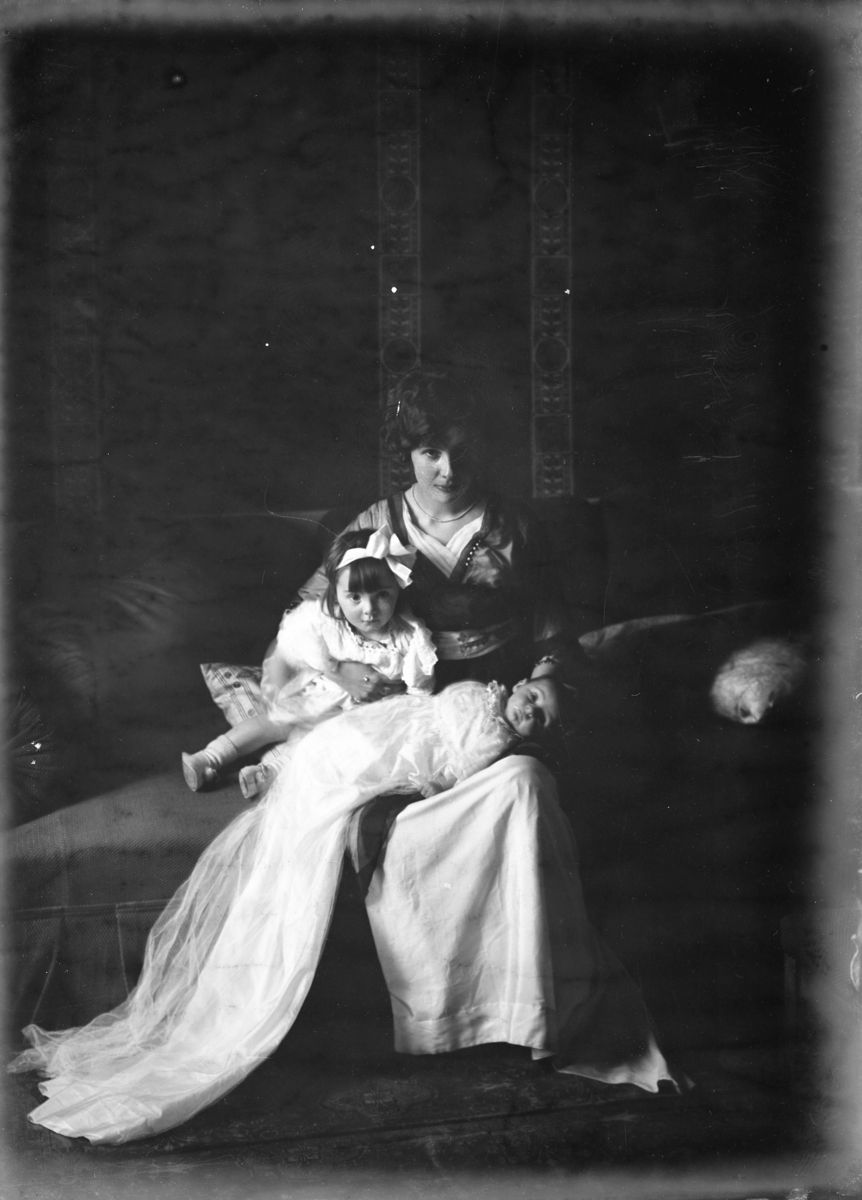 Friherrinnan Helga von Otter på Västanå med sannolikt döttrarna.