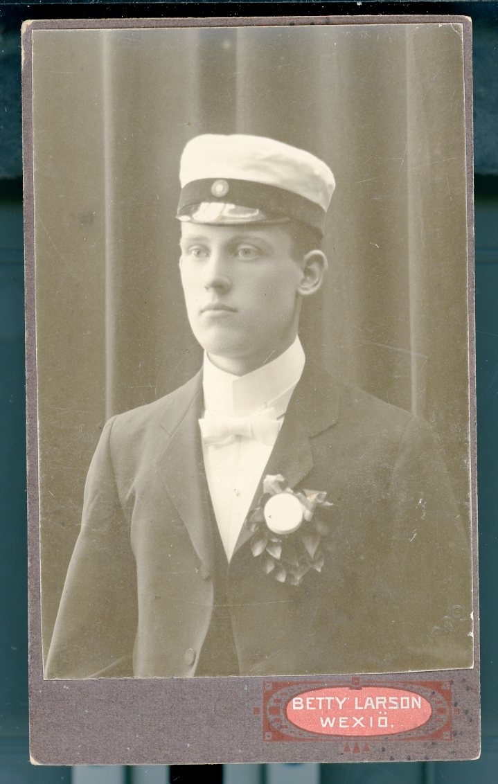 Kabinettsfotografi: Per Pleijel med studentmössa, vårterminen 1909.