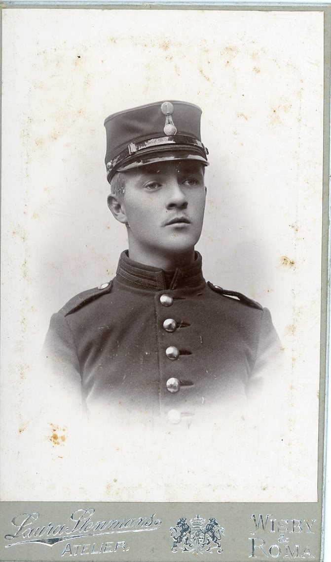 Titel: Kabinettsfotografi av en ung man i militär uniform.