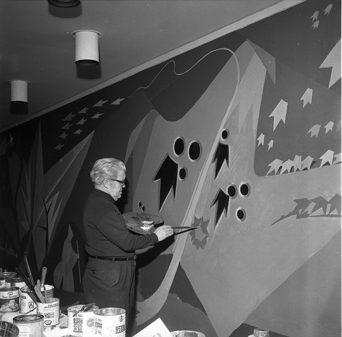 Georg Trapp målar på en väggmålning.