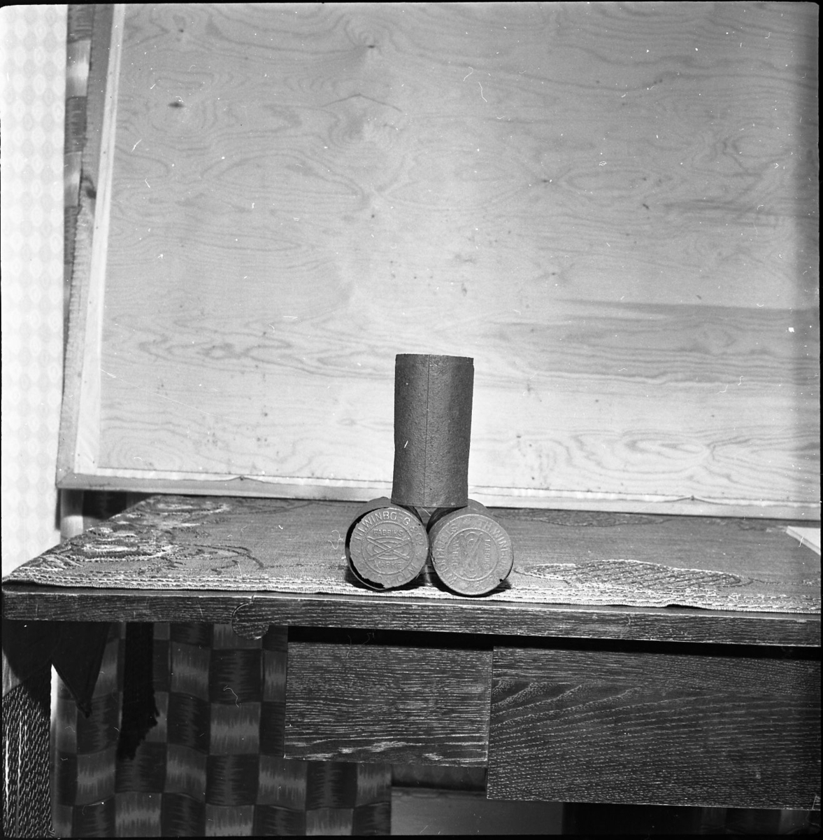 Tre stycken rostiga konservburkarn på ett burk. En står på de andra som ligger ner med värmemärket utåt: "Winborgs Stockholm".