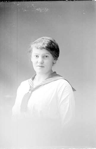Bröstbild av en kvinna i ljus blus och sjömanskrage.