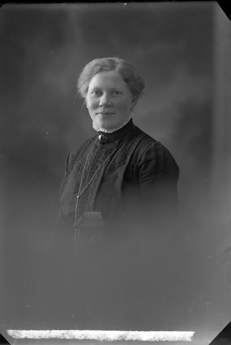Porträtt av en kvinna i mörk klänning.