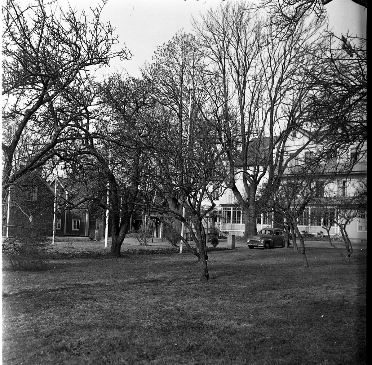 Ribbagården från gårdssidan, från söder. En PV står parkerad på grusplan.